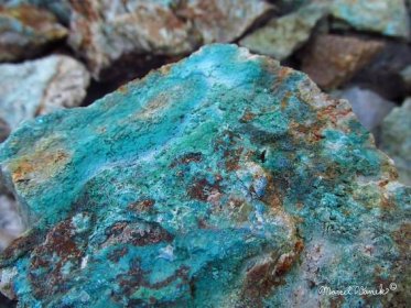 Malachit čistíme proudem tekoucí vlažné vody a nabíjíme na nepřímém slunci.