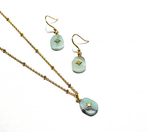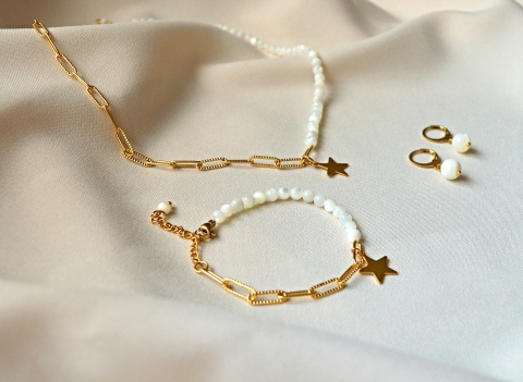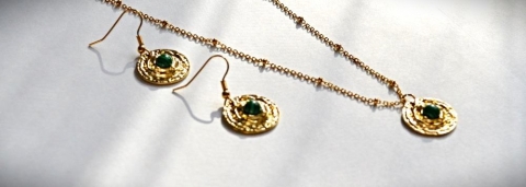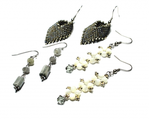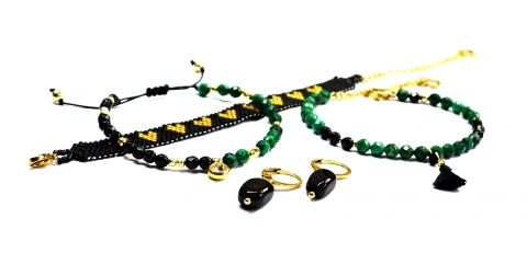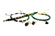 Tyto šperky jsou ručně vyráběny z kulatých a broušených skleněných korálků, polodrahokamů, pevné nitě a chirurgiké oceli 316L.