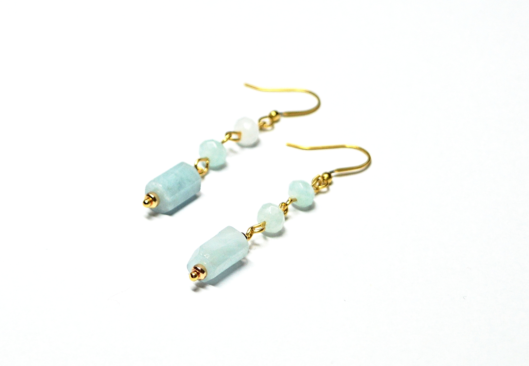 Dámské náušnice BRYXI jsou ručně vyrobeny v kombinaci nepravidelného korálku akmaranínu, skleněných korálků a pozlacené nerezové oceli.
