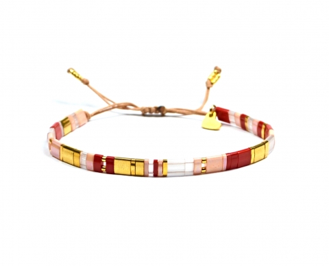 Dámský nastavitelný náramek BRYXI je vyroben v kombinaci řetízku z nerezové nebo pozlacené nerezové oceli a skleněných korálků, které jsou navlečeny na pevných šňůrkách.