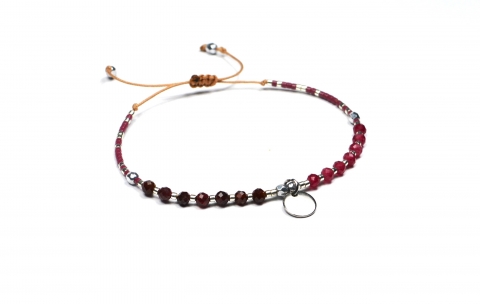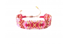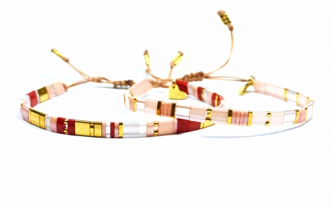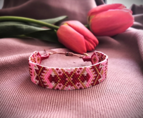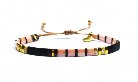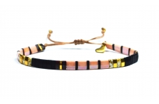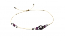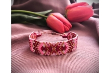 Zapínání je posuvné, oba konce náramku procházejí macramé spojkou, která umožňuje utažení šňůrek. Díky ní má náramek univerzální velikost.