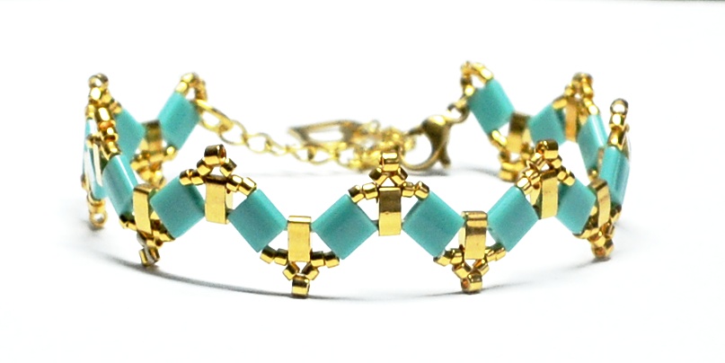 +420 737 700 147Dámský korálkový náramek BRYXI je ručně šitý ze skleněných tyrkysových korálků a zlatých korálků pokovených 24K zlatem.