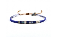Zapínání je posuvné. Oba konce náramku procházejí macrame spojkou, která umožňuje utažení šńůrek. Díky ní má náramek univerzální velikost.