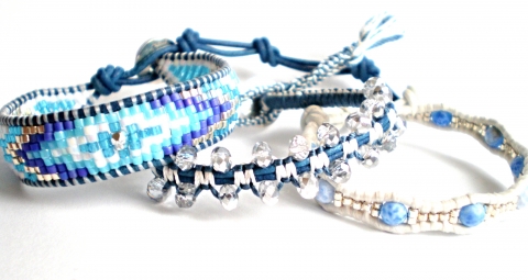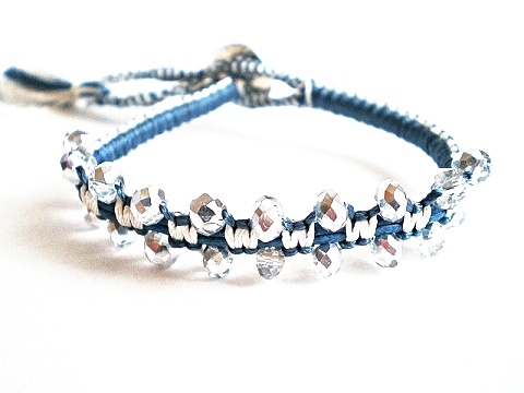 +420 737 700 147Ručně vyráběný dětský náramek BRYXI z modré přírodně barvené kulaté kůže je doplněn o skleněné korálky ve stříbrné barvě.