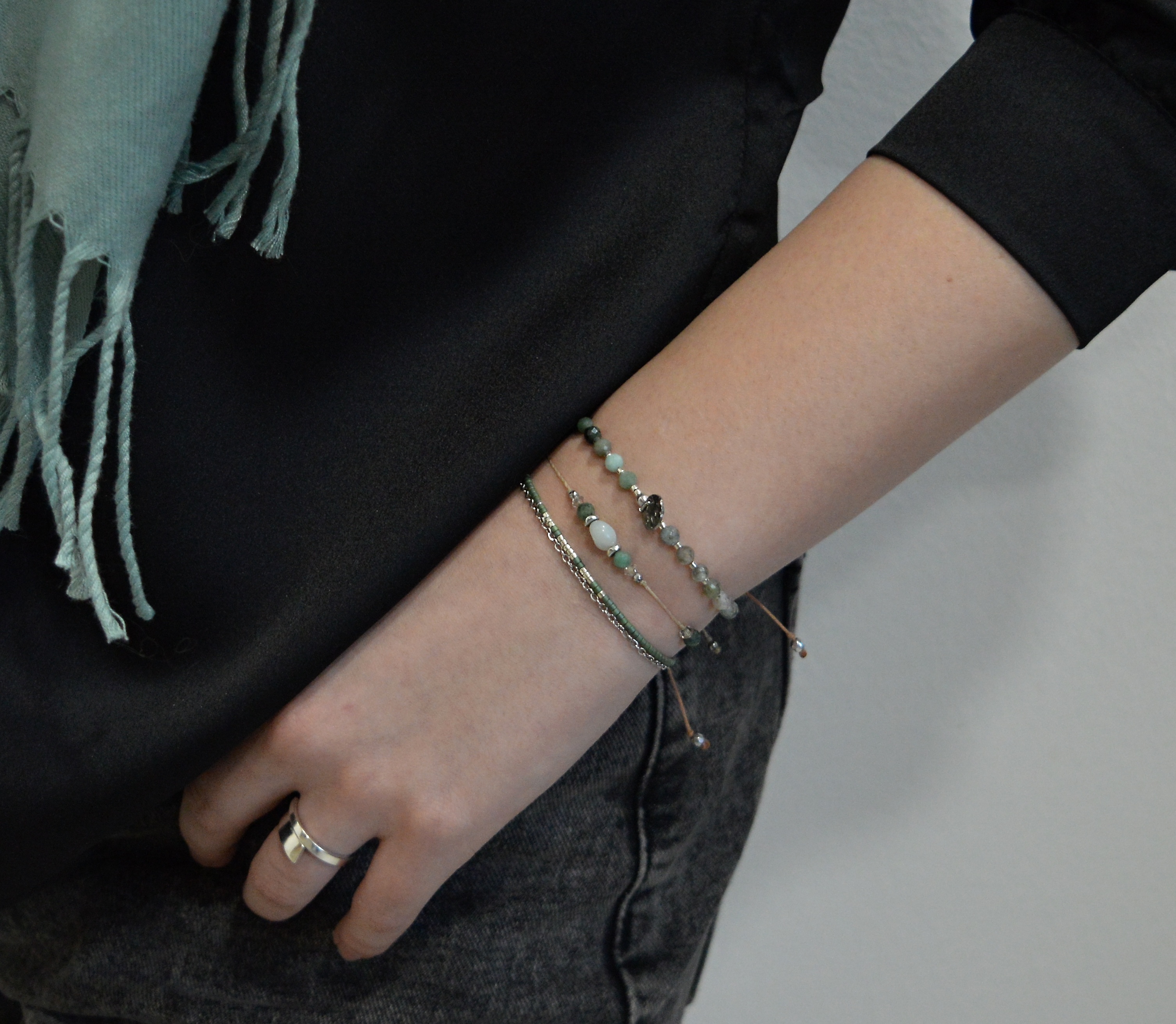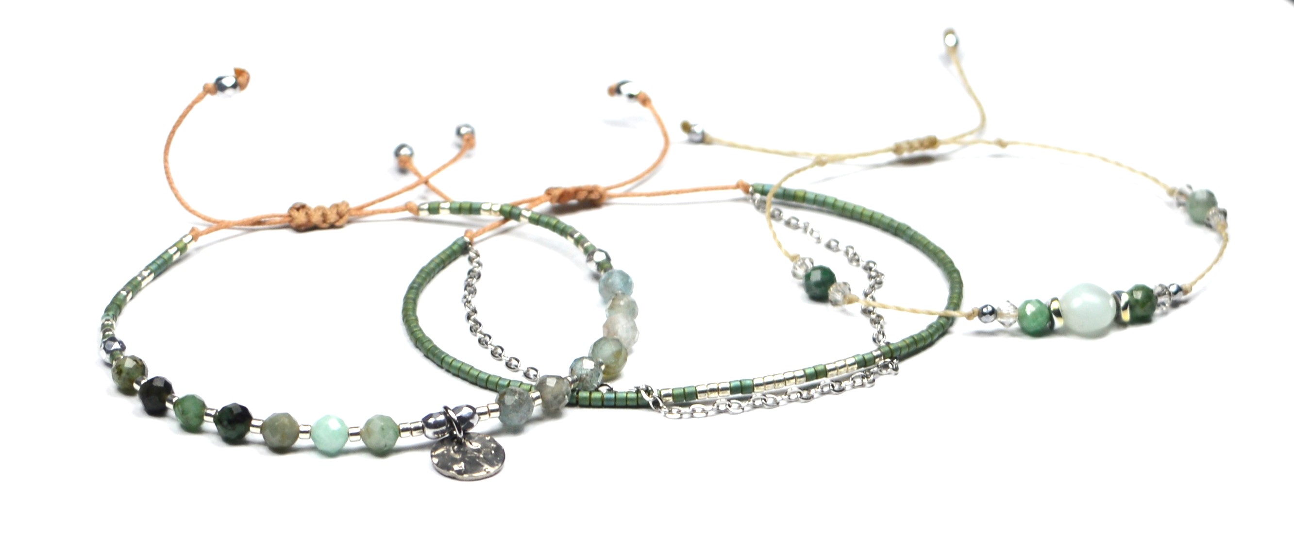 +420 737 700 147Elegantní sada náramků v zelené barvě značky BRYXI je ručně vyrobena z přírodních korálků smaragdu, zeleného turmalínu, skleněných korálků a řetízku z chirurgické oceli 316L.