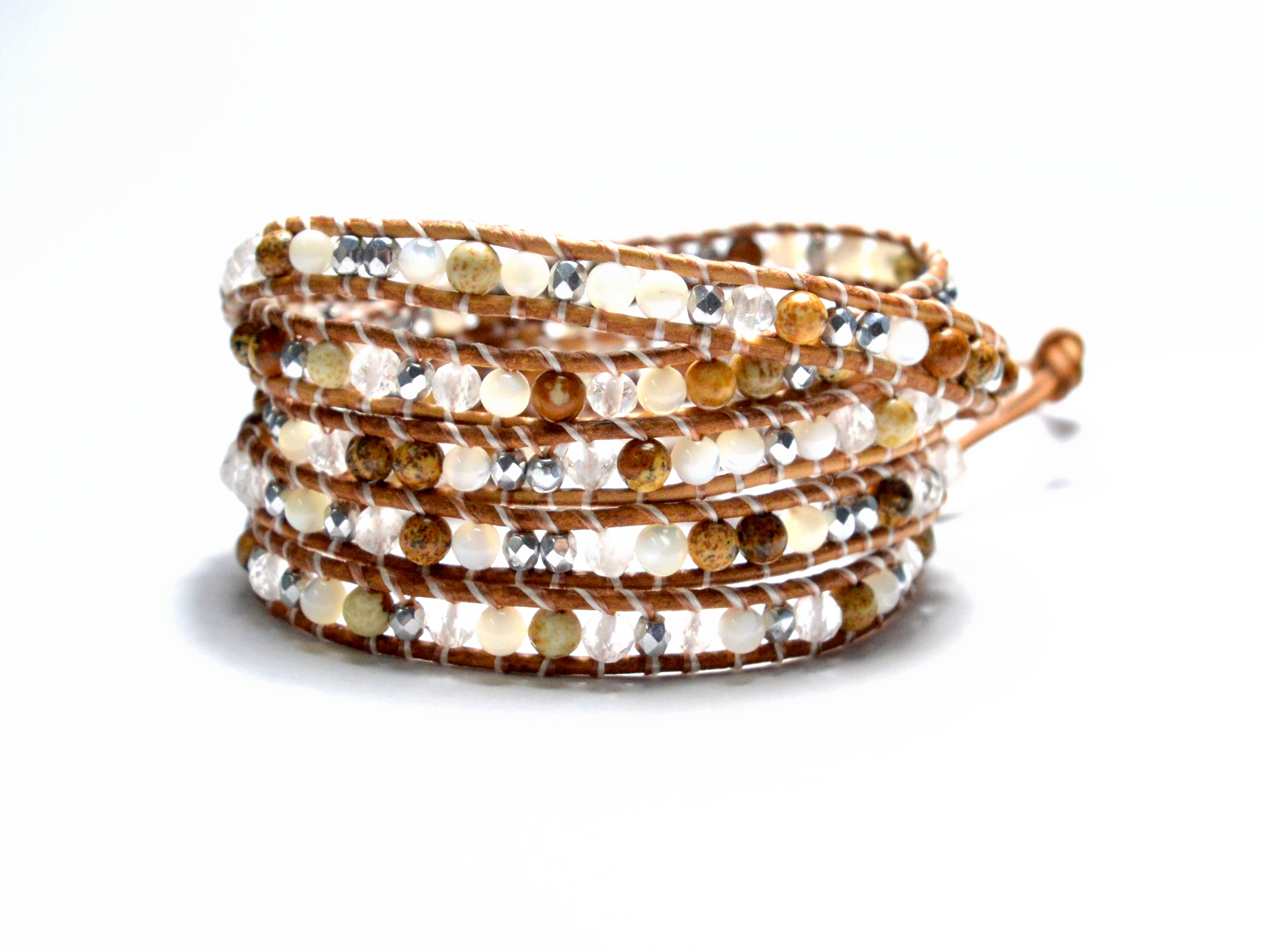 Náramek WRAP z drahých kamenů a skleněných krystalů značky BRYXI je vyroben tak, aby vytvořil pět linií kolem vašeho zápěstí.