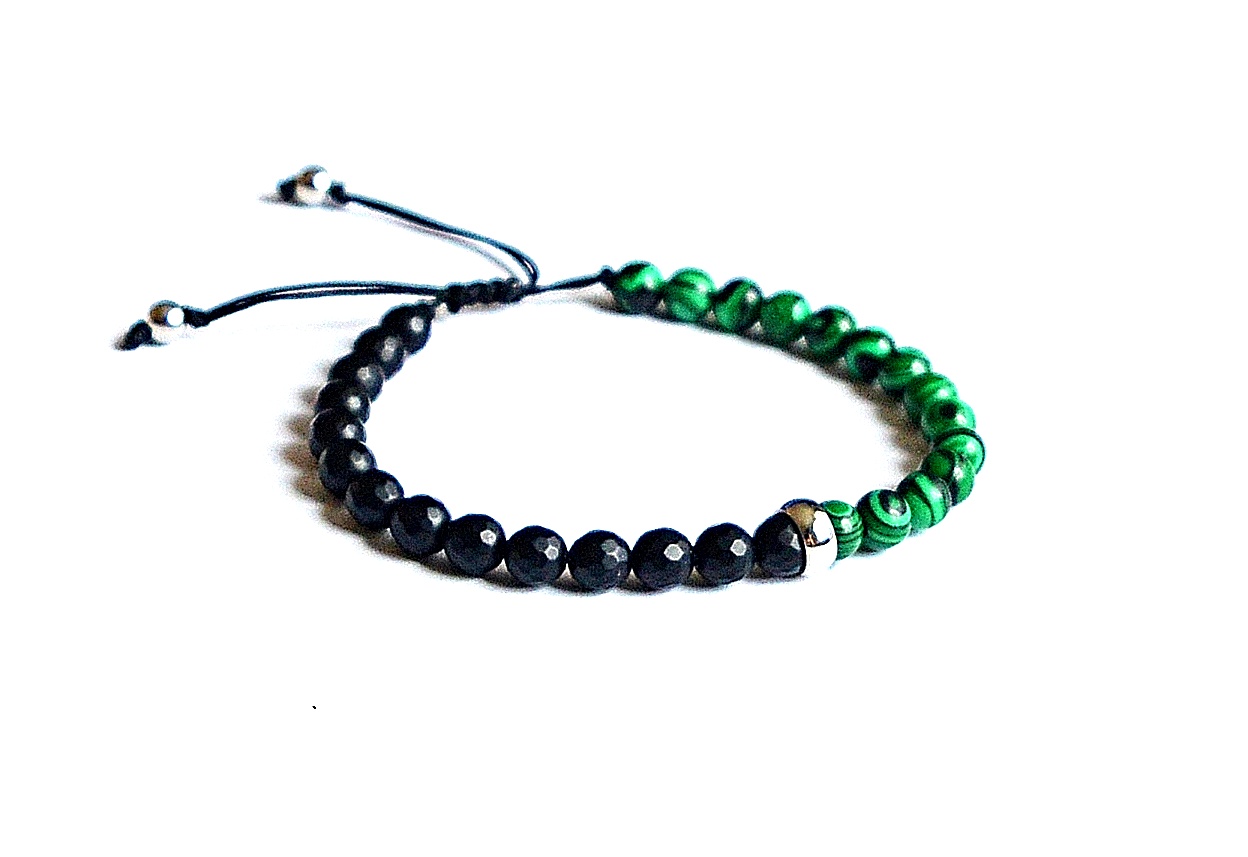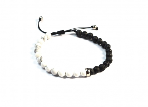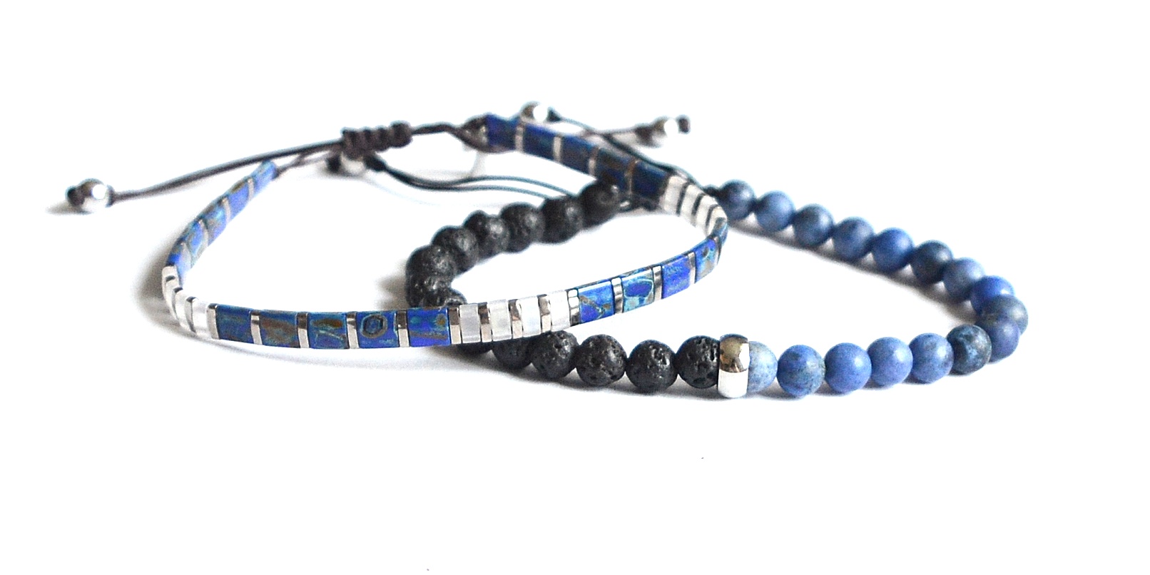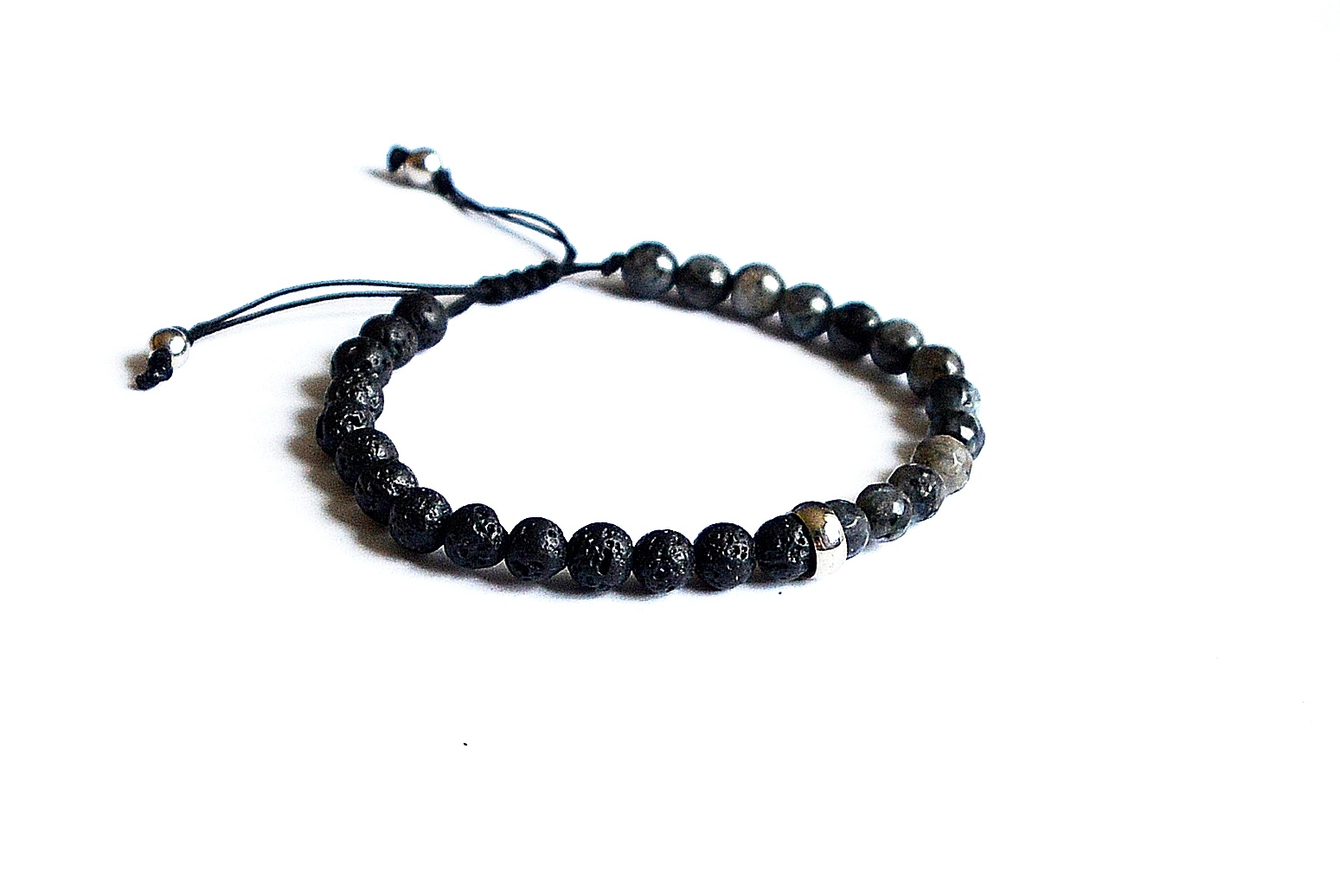 Náramky jsou dostupné v několika barvách ( bílá - láva, magnezit; černá - láva, labradorit; modrá - láva, dumortierit; zelený - onyx, malachit )