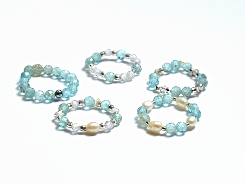 +420 737 700 147Apatitový prsten navlečený na pružné silikonové gumičce je ručně vyráběný z broušených korálků světlého apatitu, skleněných korálků, kubického zirkonu a říční perlou.