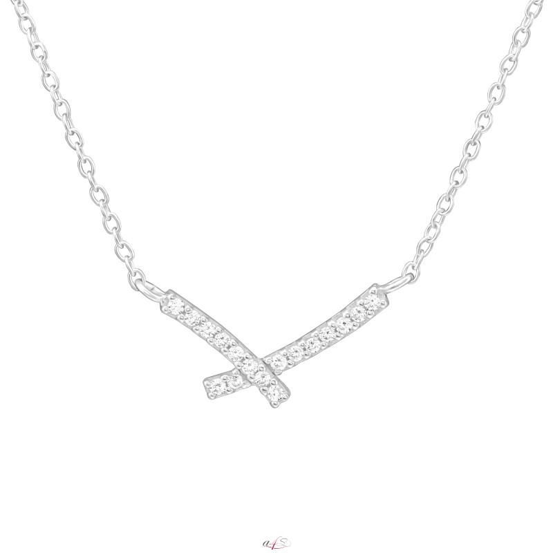 Stříbrný řetízek s přívěskem ve tvaru kříže Vás okouzlí svým jemným a propracovaným designem, který zdobí sedmnáct zirkonových kamenů.