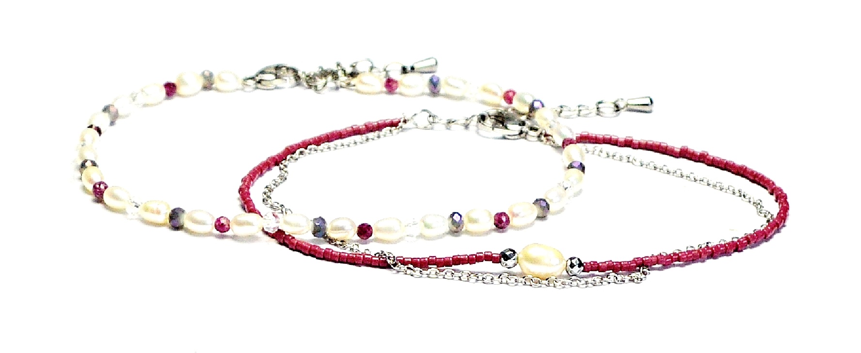 Tyto originální šperky jsou vyráběny z říčních perlel, skleněných korálků, drahých kamenů a chirurgiské oceli316L.